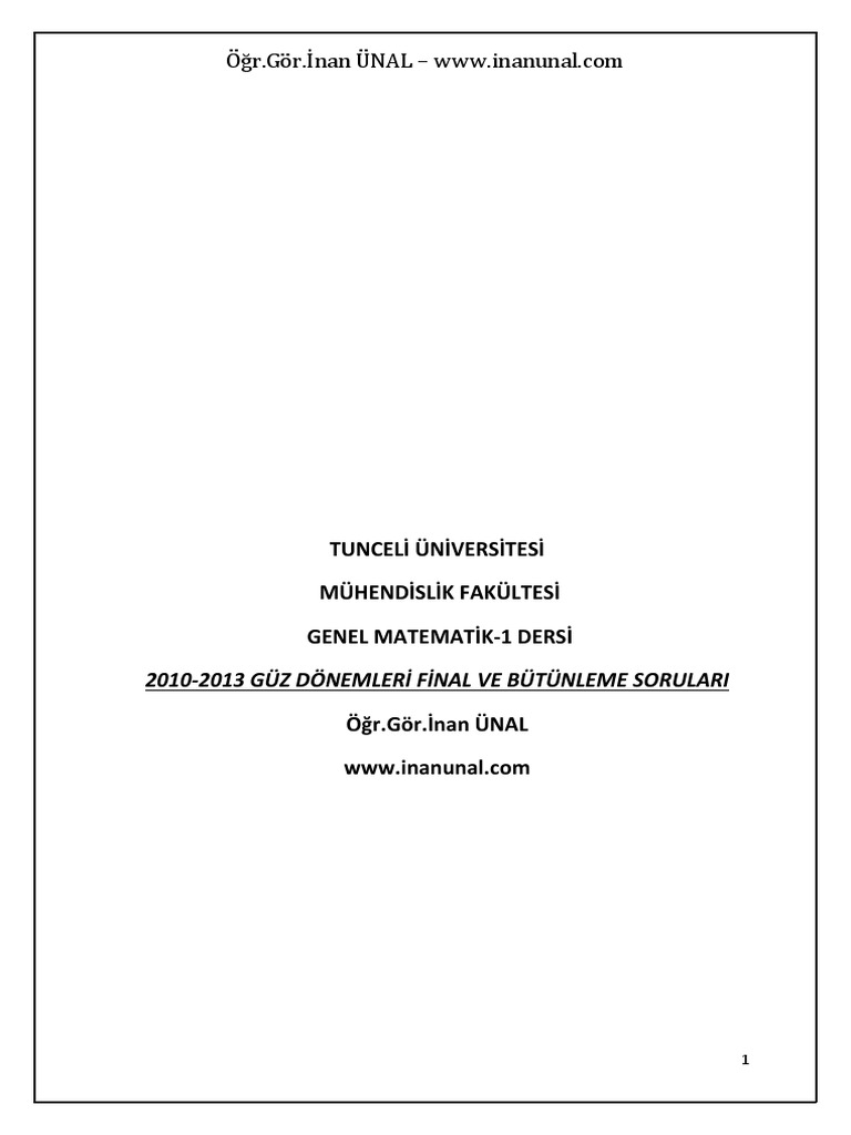 Matematik 1 Sorulari Üniversite. Arasınav soru ve cevaplarını indir. Birsen sağir duyar) uygulama soruları 1.