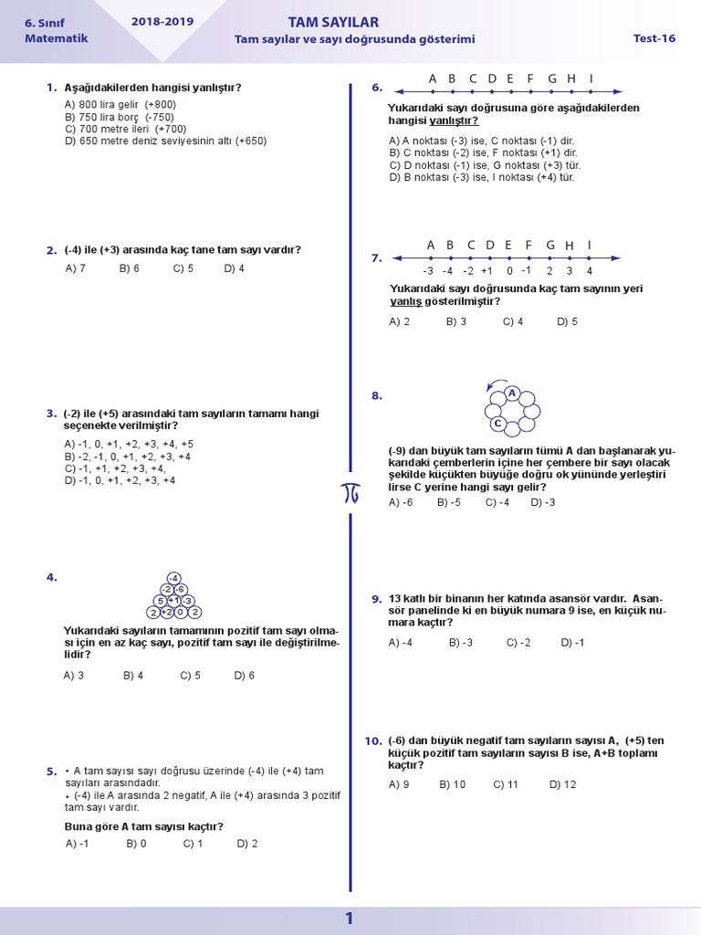 Matematik Testi 7. Sınıf Tam Sayılar. Bazı sorulardaki şekiller ve/veya olaylar ve/veya ölçüler gerçek değildir.anlatım kolaylığı için gerçek gibi şekillendirilmiş ve/veya anlatılmıştır. Çalışkan kız teşekkürler çok güzel bir testi sizin sayenizde bursuluk sınavından tam puan aldım.
