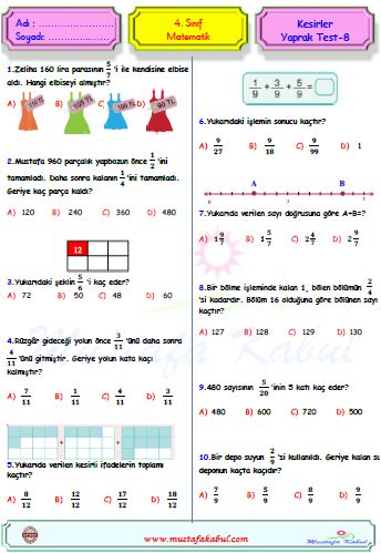 4.Sınıf Matematik Kesir Problemleri Testi Çöz. Sınıf matematik kesir problemleri test çöz. Sınıf matematik kesir problemleri kategori 4.