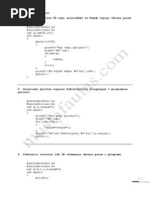 C Programlama Soruları Ve Cevapları Pdf. ▫ i̇ç içe nesne yapıları (= nested o. Aşağıdaki kod parçasının ekran çıktısı nedir?
