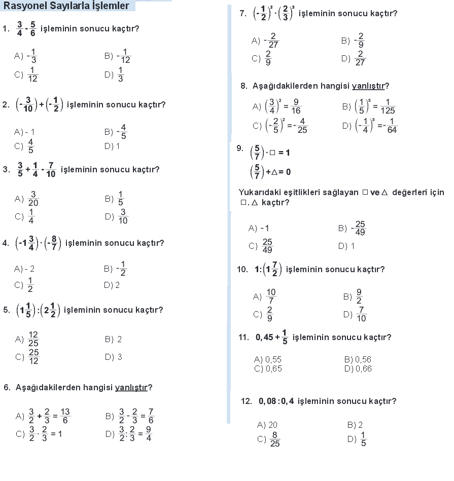 7. Sınıf Matematik Soruları Rasyonel Sayılar. Sınıf matematik rasyonel sayılarla i̇şlemler testi. Rasyonel sayılar test çöz 7.