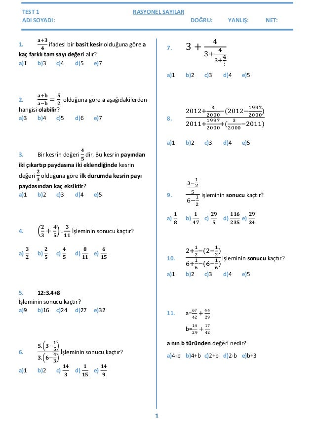 Matematik Testi Rasyonel Sayılar. Soru 1 7.sınıf matematik rasyonel sayılar cevaplı test doğru cevap b. 7.sınıf matematik rasyonel sayılar testi çöz.